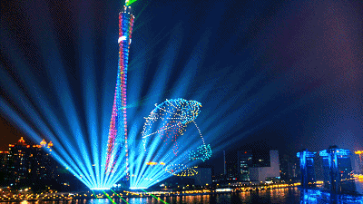 無人機(jī)與燈光秀的結(jié)合,就像是秋天與落葉的搭配,因為了彼此的存在,才成就了絕美的風(fēng)景。燈光的創(chuàng)意呈現(xiàn)為無人機(jī)編隊表演穿上了一件華麗的外衣,也正是這件外衣,讓無人機(jī)成為了夜空中的精靈。也正是無人機(jī)在空中的多變造型,讓燈光秀得以在全新的空間大放異彩,自此,可以在空中綻放的不只有煙花,還有無人機(jī)編隊表演這一全新的媒體形式。