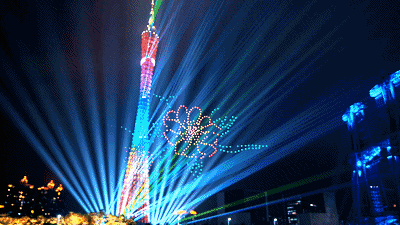 最令人震撼是海上絲綢之路立體造型,近千架無人機(jī)組成“地球”,線條從“廣州”發(fā)散至世界各地,光彩奪目,蔚為壯觀。展現(xiàn)廣東“敢為天下先”的氣魄,敞開胸懷,擁抱世界的開放姿態(tài)。