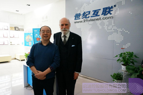 啟迪數字集團聯席董事長、世紀互聯創始人兼董事長陳升和溫頓?瑟夫博士(右)合影