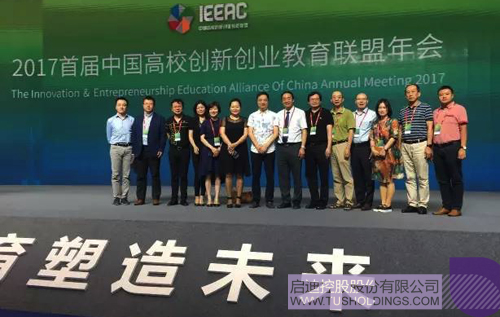 啟迪控股副總裁、啟迪之星董事長張金生(右六)和啟迪之星創(chuàng)投總經理劉博(左六)出席2017首屆中國高校創(chuàng)新創(chuàng)業(yè)教育聯(lián)盟年會