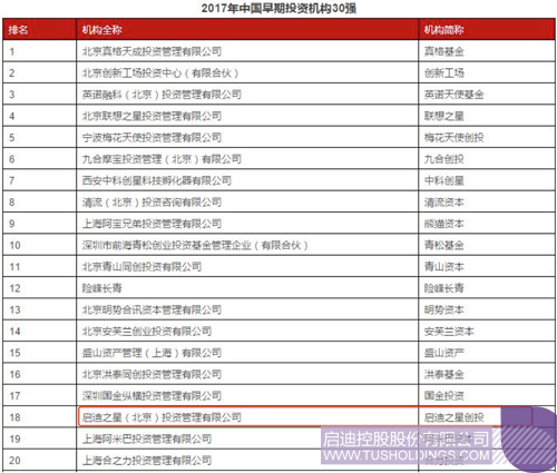近日,中國股權投資領域最權威的排名機構清科研究中心發布了清科2017中國股權投資年度排名,啟迪之星創投榮獲“2017年中國早期投資機構30強”第18名。而在此前同樣由清科研究中心發布的2017中國硬科技領域投資機構30強榜單中,啟迪之星創投榜上有名,排名第18位。