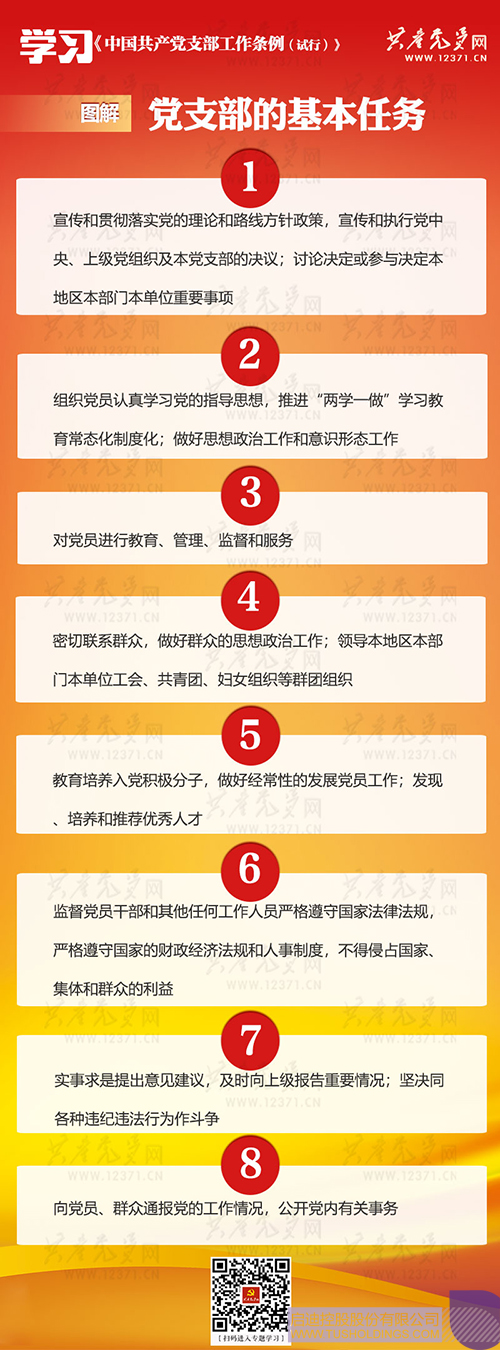 《中國共產黨支部工作條例(試行)》是為堅持和加強黨的全面領導,弘揚“支部建在連上”光榮傳統,落實黨要管黨、全面從嚴治黨要求,全面提升黨支部組織力,強化黨支部政治功能,充分發揮黨支部戰斗堡壘作用,鞏固黨長期執政的組織基礎,根據《中國共產黨章程》和有關黨內法規制定。由中共中央于2018年11月25日印發,自2018年10月28日起施行。