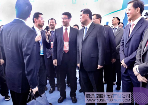 湛江啟迪董事長兼總經(jīng)理吳鷹(前排左二)向廣東省省長馬興瑞(前排右二)匯報啟迪海洋科技展覽情況