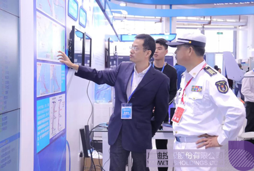 某艦隊領(lǐng)導(dǎo)饒有興趣地參觀湛江啟迪展區(qū),詳細了解集成了風(fēng)暴潮、海浪等預(yù)警成果、實時雷達數(shù)據(jù)與海域無人機及海上無線通信技術(shù)的“啟迪海洋+”科創(chuàng)平臺