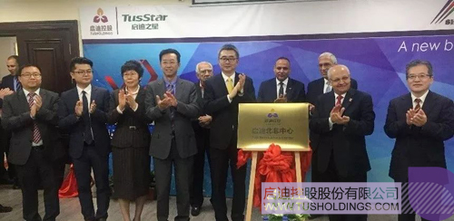 啟迪控股黨委書記李志強、常務(wù)副總裁陳鴻波、副總裁安紅平與埃及BUE大學(xué)副校長葉哈頁教授共同為啟迪北非中心揭牌