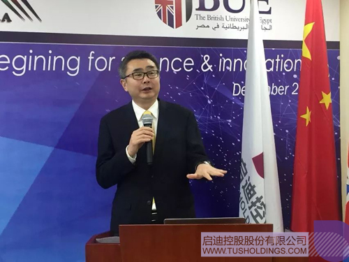 埃及BUE大學(xué)校長艾哈邁德?哈邁德在致辭時表示,埃及目前正在面臨著轉(zhuǎn)型升級的重要階段,科技創(chuàng)新將成為推進社會進步與經(jīng)濟發(fā)展的重要驅(qū)動力,因此BUE大學(xué)致力于打造全鏈條的創(chuàng)新生態(tài)系統(tǒng),并以此服務(wù)于埃及社會。哈邁德教授還表示,建設(shè)埃及的第一個大學(xué)科技園,任重而道遠,然而與啟迪控股這樣先進的科技服務(wù)企業(yè)合作,BUE大學(xué)有信心成功運營科技園。啟迪的在園區(qū)管理運營方面的成功經(jīng)驗以及其全球創(chuàng)新網(wǎng)絡(luò),將為埃及的政府、大學(xué)、企業(yè)帶來新理念、新觀點和新方法,必將為埃及的科技創(chuàng)新領(lǐng)域注入新的活力。