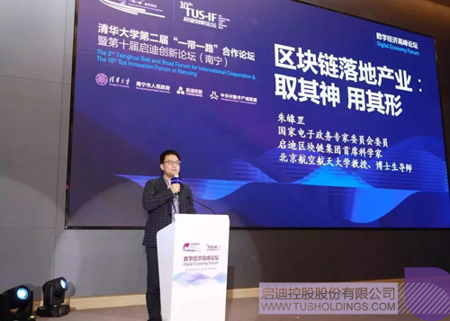 國家電子政務專家委員會委員朱皞罡發表題為《區塊鏈落地產業:取其神 用其形》的主旨發言