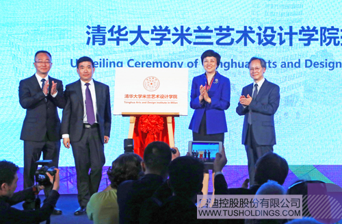 儀式上,陳旭、宋雪峰、魯曉波及清華美院黨委書記李功強共同為“清華大學米蘭藝術設計學院”掛牌。